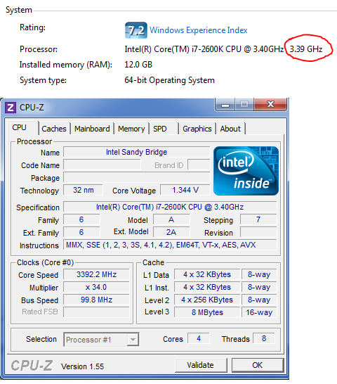 Screen from My Computer properties and CPUz