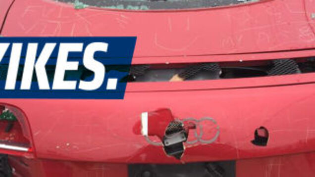 Just look at this poor R8. This isn't vandalism — this is something much more intense, a focused, cold rage turned into a systematic destruction of a car. Every light is smashed, windows are shattered, leather is cut, carved, shredded, even the instrument cluster is destroyed. Driving this car off a cliff would have left more salvageable parts.
